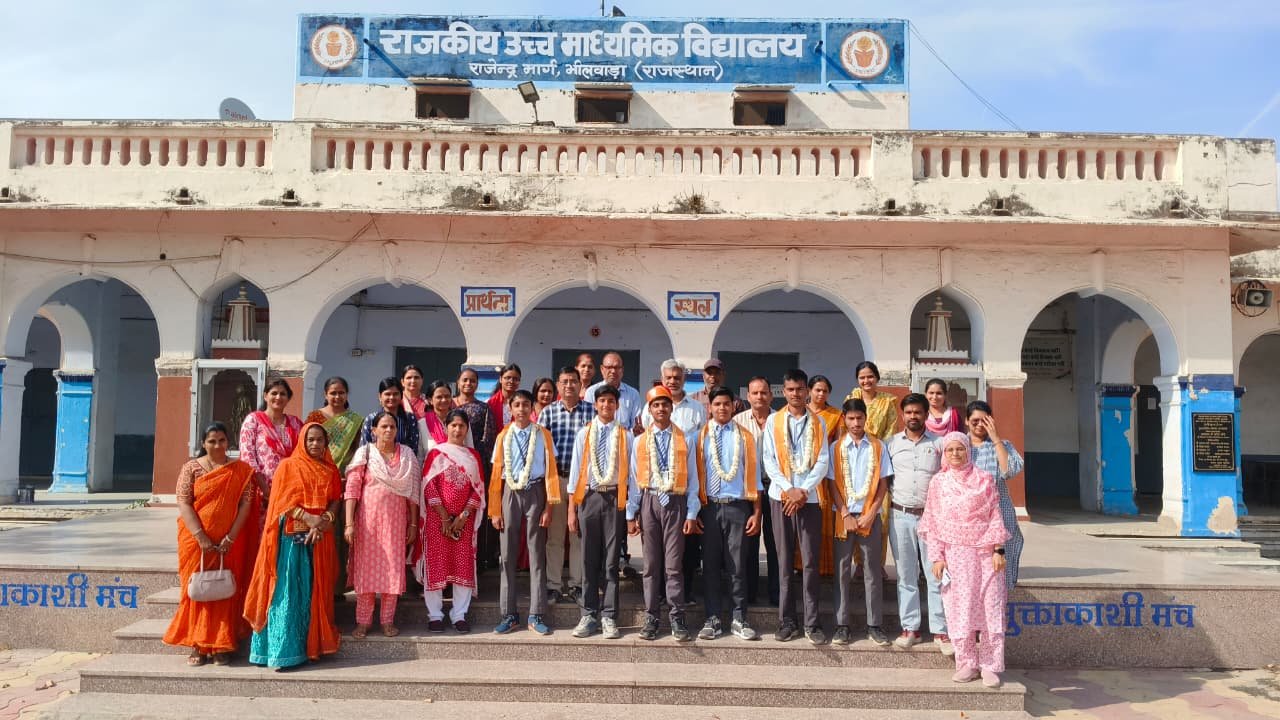 भीलवाड़ा । मंगलवार को घोषित हुए माध्यमिक बोर्ड परीक्षा परिणाम में राजेंद्र मार्ग राजकीय उच्च माध्यमिक विद्यालय विद्यार्थियों ने हर वर्ष की भांति इस वर्ष भी अव्वल रहते हुए विद्यालय का 92.58 प्रतिशत परीक्षा परिणाम दिया। विद्यालय के प्रधानाचार्य राजेन्द्र सिंह गहलोत ने बताया कि सत्र 2025-26 में कक्षा 10 में 364 विद्यार्थी पंजीकृत हुये, जिसमें से 337 विद्यार्थी उत्तीर्ण हुए। जिनमें 132 विद्यार्थी प्रथम श्रेणी, 173 विद्यार्थी द्वितीय श्रेणी व 32 विद्यार्थी तृतीय श्रेणी में उत्तीर्ण हुए। छात्र वैभव साहू ने 95.67 प्रतिशत प्राप्त करते हुये प्रथम स्थान प्राप्त किया, अनमोल उपाध्याय ने 92.00 प्रतिशत प्राप्त करते हुए द्वितीय स्थान प्राप्त किया तथा देवांग जोशी ने 91.17 प्रतिशत प्राप्त कर तृतीय स्थान प्राप्त किया।