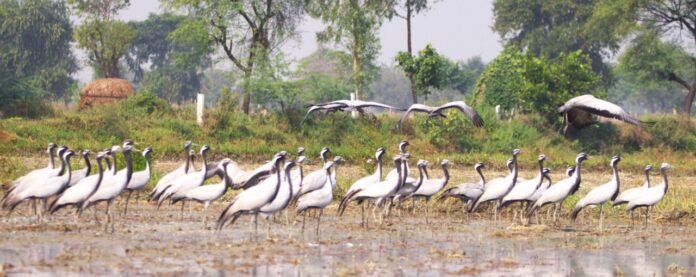 वन्यजीव फोटोग्राफर दीपक मुदगल ने बताया कि केवलादेव राष्ट्रीय उद्यान और इसके आसपास का क्षेत्र प्रवासी पक्षियों के लिए महत्वपूर्ण ठिकाना है। ये पक्षी भोजन की तलाश में उद्यान के आसपास के खेतों और जलाशयों में आते-जाते रहते हैं। कि अक्टूबर की शुरुआत से ही प्रवासी पक्षियों का आगमन शुरू हो गया है। हाल ही में भरतपुर-मथुरा सीमा पर सारस क्रेन की फोटोग्राफी के दौरान उनकी नजर एक पक्षी झुंड पर पड़ी। दूरबीन से देखने पर पता चला कि यह डेमोसाइल क्रेन का झुंड है । ये पक्षी साइबेरिया और मध्य एशिया के ठंडे क्षेत्रों से हजारों किलोमीटर की यात्रा कर भारत आते हैं, क्योंकि वहां अक्टूबर से मार्च तक अत्यधिक ठंड और बर्फबारी होती है।
