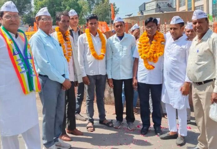 स्मार्ट हलचल|ब्यावर में मंगलवार को आम आदमी पार्टी (आप) ने चांग गेट स्थित महात्मा गांधी सर्किल पर एक स्वागत समारोह आयोजित किया। इसमें राजस्थान चीता मेहरात काठात करणा जी के डांग से नवनियुक्त अध्यक्ष रोशन काठात, सचिव रसूल काठात और प्रचार मंत्री बहादुर काठात का अभिनंदन किया गया।