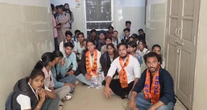 भीलवाड़ा। अखिल भारतीय विद्यार्थी परिषद द्वारा माणिक्य लाल वर्मा राजकीय महाविद्यालय, भीलवाड़ा में विश्वविद्यालय की कथित अनियमितताओं को लेकर प्रदर्शन किया गया। इस दौरान परिषद कार्यकर्ताओं ने प्राचार्य के नाम ज्ञापन सौंपकर विद्यार्थियों के हित में कार्रवाई की मांग की। एबीवीपी की प्रांत कार्य समिति सदस्य दीपा जाट ने बताया कि विश्वविद्यालय द्वारा जारी एकेडमिक कैलेंडर में प्रवेश परीक्षा व परिणाम को लेकर लगातार अनियमितताएं सामने आ रही हैं। उन्होंने आरोप लगाया कि पिछले एक वर्ष से विद्यार्थियों को एक ही विषय में लगातार 00 अंक दिए जा रहे हैं, जबकि वही विद्यार्थी अन्य विषयों में अच्छे अंक प्राप्त कर रहे हैं। इससे विद्यार्थियों में मानसिक तनाव बढ़ रहा है और उनका भविष्य प्रभावित हो रहा है। दीपा जाट ने कहा कि विश्वविद्यालय प्रशासन कथित रूप से फीस के माध्यम से शिक्षा का व्यापारीकरण कर रहा है। उन्होंने मांग की कि यदि किसी विद्यार्थी को उसके औसत अंक से कम अंक मिलते हैं तो उसे री-वैल्यूएशन का अधिकार दिया जाए। वहीं ₹1300 बैक परीक्षा फॉर्म शुल्क के नियम को समाप्त किया जाए, क्योंकि अधिक फीस के कारण कई विद्यार्थियों की पढ़ाई छूटने की स्थिति बन रही है।