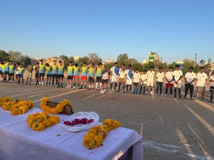 ब्यावर। स्मार्ट हलचल|बाबा साहेब डॉ. भीमराव अंबेडकर जयंती सप्ताह के पावन अवसर पर बुगला फुटबॉल एकेडमी (बी.एफ.ए.) द्वारा एक मैत्री फुटबॉल मैच का शानदार आयोजन किया गया। एकेडमी के संरक्षक एवं पूर्व सभापति गोविन्द पंडित के मार्गदर्शन में यह मुकाबला बी.एफ.ए. क्लब ब्यावर और डी.एफ.सी. क्लब अजमेर के बीच खेला गया।