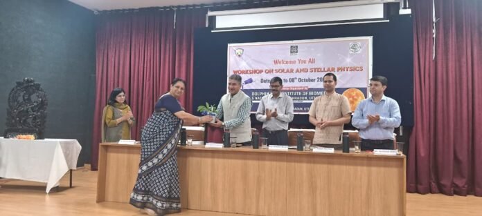 देहरादून, 6 अक्टूबर 2025 — स्मार्ट हलचल|डॉल्फिन (पी.जी.) इंस्टिट्यूट ऑफ बायोमेडिकल एंड नेचुरल साइंसेज़, देहरादून में तीन दिवसीय राष्ट्रीय कार्यशाला “स्टेलर एंड सोलर फिज़िक्स” का शुभारंभ आज श्री दीपक कुमार गैरोला, सचिव, संस्कृत शिक्षा विभाग, उत्तराखंड सरकार द्वारा किया गया। यह कार्यशाला दून विश्वविद्यालय, देहरादून के सहयोग से आयोजित की जा रही है और इसमें देशभर के प्रमुख खगोल वैज्ञानिक, अध्यापक और शोधार्थी भाग ले रहे हैं।