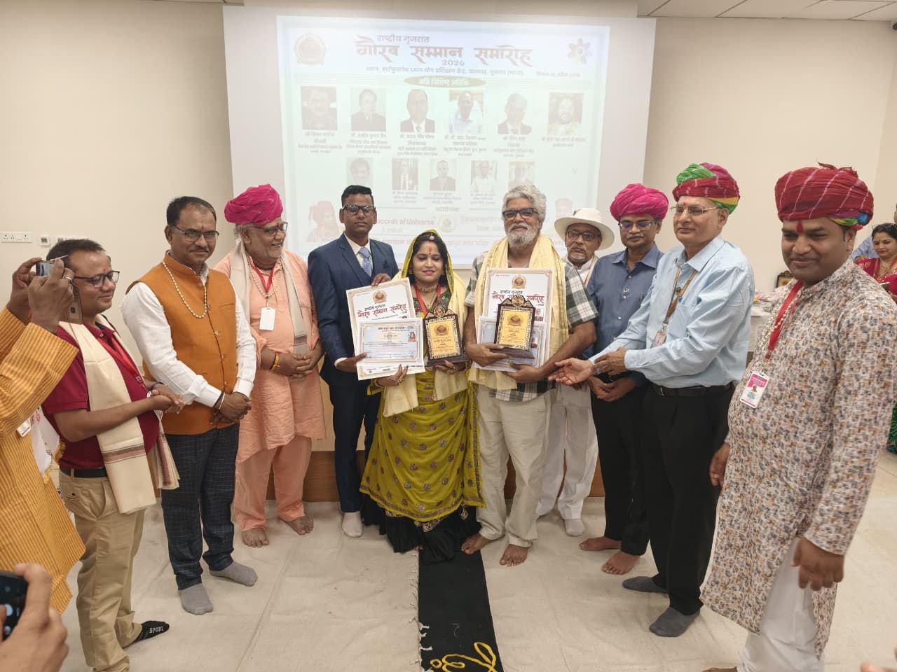जयपुर/वलसाड। स्मार्ट हलचल|समाजसेवा और व्यवसाय के क्षेत्र में उल्लेखनीय योगदान के लिए जयपुर निवासी जगदीश नारायण मीणा एवं श्रीमती अनिता मीणा को गुजरात गौरव सम्मान-2026 से सम्मानित किया गया। यह सम्मान गुजरात के वलसाड जिला में आयोजित एक भव्य कार्यक्रम के दौरान राज्यपाल सहित देशभर से आए प्रबुद्ध जनों की उपस्थिति में प्रदान किया गया।
