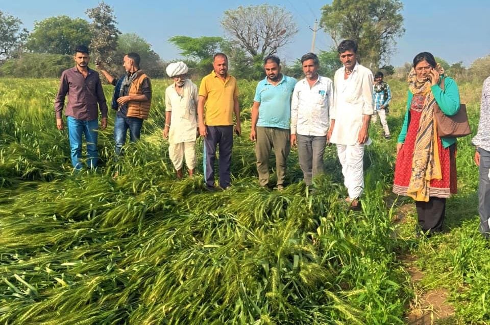 उदलियास | बड़ा महुआ में बे-मोसम बारिश तेज हवाओ व ओलावृष्टि से फसल खराब पंचायत समिति प्रतिनिधि शुभम चौधरी ने बताया कि ग्राम पंचायत बड़ामहुआ व खायडा के बारिश में खेतों में हुए गेहूं की फसल किसानों के नुकसान को देखकर संबंधित अधिकारी पटवारी अंकिता ओझा ग्राम सेवक कमलेश जाट ने खेतों में जाकर निरीक्षण किया सरपंच बद्री लाल जाट ने बताया कि पटवारी व ग्रामसेवक को किसानों के फसल खराब को देखते हुए खेत में मोके पर बुलाकर ग्रामीणों के साथ खेतों में जाकर फसल खराबा बताया व मौके पर ही ग्राम सेवक से रिपोर्ट तैयार करवाकर संबंधित विभाग में भिजवाई गई जिसकी प्रति मेरे द्वारा साझा की जा रही है गांवो में किसानों का हाल बेहाल होरहा है आप सभी के सी सी लोन धारक संबंधित बीमा कंपनी कस्टमर केयर नंबर पर संपर्क करके शिकायत दर्ज करवाए जल्द ही कलेक्ट्रेट पर ग्रामीणों के साथ ज्ञापन दिया जाएगा व मुआवजा दिलवाया जाएगा