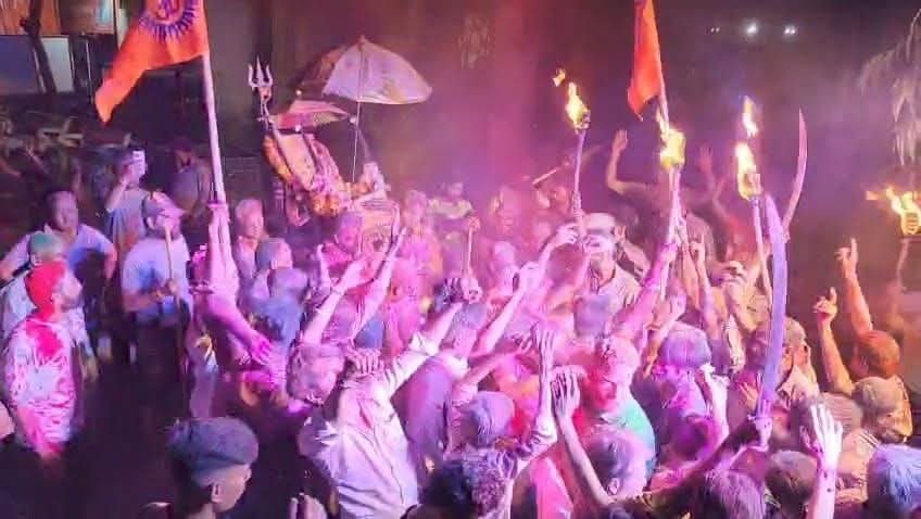 भीलवाड़ा । भीलवाड़ा जिले भर में सोमवार को होलिका दहन का त्यौहार धमुधाम और उत्साहपूर्वक मनाया गया । शुभ मुहूर्त और विधि विधान पूर्वक अलग अलग जगहों पर होलिका का दहन किया गया । हरनी गांव में चांदी की होलिका और सोने के प्रहलाद की बैंड बाजों के साथ सवारी निकली गई । अग्रवाल उत्सव भवन में 11 हजार कंडो और कपूर के साथ होलिका का दहन किया । वही भीलवाड़ा के पंचमुखी मोक्षधाम में हर बार की तरह इस बार भी परंपरागत अनुसार भैरू जी की सवारी निकाली और भक्तो ने राख से होली खेली । मंगलवार ओर बुधवार को भीलवाड़ा शहर सहित जिले भर में धुलंडी का पर्व मनाया जाएगा । हवा में खूब उड़ेगा गुलाल डीजे पर जमकर थिरकेंगे युवा और बच्चे ।