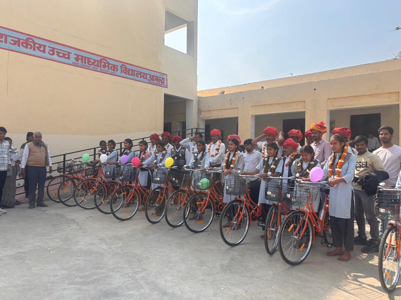 खजूरी|स्मार्ट हलचल|खजूरी उपतहसील मुख्यालय के आमल्दा पंचायत के राजकीय उच्च माध्यमिक विद्यालय में स्कूल की छात्राओं को 33 साइकिल वितरित कर लाभान्वित कीया इसके कार्यक्रम के मुख्य अतिथि पूर्व प्रधान प्रतिनिधि किशोर जी शर्मा वरिष्ठ अतिथि प्रदेश मंत्री एसटी मोर्चा महेंद्र जी मीणा पूर्व मंडल अध्यक्ष नंदभवर सिंह जी रामभवर सिह जी सुरेंद्र जैन शिवराज मीणा महावीर वैष्णव आदि उपस्थित थे