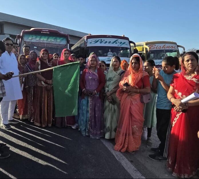 टोंक स्मार्ट हलचल|आज अंतर्राष्ट्रीय महिला दिवस के अवसर पर हनुमानगढ़ में आयोजित होने वाले विशाल महिला सम्मेलन में भाग लेने हेतु नोखा बीकानेर क्षेत्र की हजारों महिलाओं की उपस्थिति में बसों को भारतीय जनता पार्टी के भरतपुर संभाग के प्रदेश प्रभारी एवं नोखा के पूर्व विधायक बिहारी लाल बिश्नोई ने हरी झंडी दिखाकर रवाना किया।