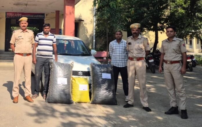 भीलवाड़ा । काछोला थाना पुलिस ने अवैध मादक पदार्थ के विरूद्ध बड़ी कार्यवाही को अंजाम देते हुए स्विफ्ट कार से तीन कटटों में 46 किलोग्राम अवैध डोडा चूरा बरामद किया । एसपी धर्मेन्द सिंह के आदेशानुसार जिले में ऐरिया डाॅमिनेशन के तहत अवैध मादक पदार्थों के विरूद्ध प्रभावी कार्यवाही के लिए राजेश आर्य अति० पुलिस अधीक्षक शाहपुरा के निर्देशन में कर रविन्द्र कुमार यादव पुलिस उप अधीक्षक वृत कोटडी के सुपरवीजन में काछोला थाना प्रभारी बालकिशन शर्मा के नेतृत्व में विषेश टीम का गठन किया गया। पुलिस के मुताबिक गठित टीम ने जगमोहनपुरा ग्राम के पास में नाकाबन्दी लगा रखी थी इस दौरान स्विफ्ट कार को वाहन चालक छोडकर भाग गया जिसकी तलाशी लेने पर उसमे तीन कटटों में 46 किलोग्राम अवैध डोडा चूरा बरामद किया तथा अवैध डोडा चूरा परिवहन में प्रयुक्त वाहन कार को जप्त कर मामला एनडीपीएस एक्ट में दर्ज किया । पुलिस आरोपी की तलाश कर रही है । टीम में रामेष्वरलाल, गोपेश कुमार, जीतराम, हरीसिंह और राजेन्द्र कुमार शामिल थे ।