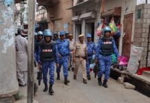 अलीगढ़ थाना क्षेत्र में कानून-शांति व्यवस्था को मजबूत करने उतरी रैपिड एक्शन फोर्स-संवेदनशील इलाकों का किया गहन सर्वे