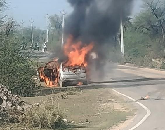 मांडल थाना क्षेत्र में सोमवार को उस समय अफरा-तफरी मच गई जब भादू माताजी स्थल के समीप एक चलती कार में अचानक आग लग गई। घटना के दौरान वाहन से धुआं उठता देख कार में सवार लोगों में हड़कंप मच गया। जानकारी के अनुसार चालक ने सूझबूझ का परिचय देते हुए तुरंत वाहन रोका और सभी साथियों को सुरक्षित बाहर उतार लिया। प्रत्यक्षदर्शियों के मुताबिक कुछ ही देर में कार से लपटें उठने लगीं। गनीमत रही कि समय रहते सभी लोग बाहर निकल गए और किसी प्रकार की जनहानि की सूचना नहीं है।