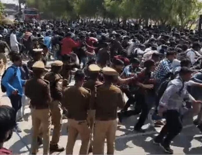 जिसकी सूचना पर कई थानों की पुलिस मौके पर पहुंची और जब छात्र समझाने के बाद भी नहीं माने तो उसने छात्रों पर लाठी चार्ज कर दिया ,जिसमें कई छात्र गंभीर रूप से घायल हो गए।