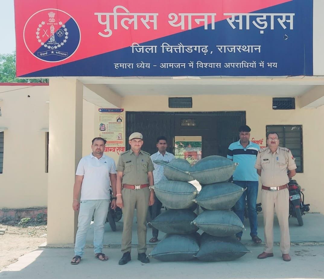 चित्तौड़गढ़। स्मार्ट हलचल।बुधवार को जिले की साडास थाना पुलिस ने अवैध मादक पदार्थों की तस्करी के विरूद्ध बडी कार्यवाही करते हुए एक बाड़े में इनोवा कार में भरने के लिए रखा 185 किलो 700 ग्राम अवैध अफीम डोडा चुरा को जब्त किया हैं। मामले में इनोवा कार को भी जब्त किया गया है। बाड़े के मालिक की तलाश की जा रही हैं। पुलिस अधीक्षक सुधीर जोशी ने बताया कि बुधवार को एसएचओ साडास कैलाशचन्द उ.नि. थाने के पुलिस जाप्ता के साथ मुखबिर की सूचना पर साडास थाने के साण्डिया स्थित लादूलाल पुत्र गोपीलाल गुर्जर के बाडे से आठ प्लास्टीक के कट्टो में भरा 185 किलो 700 ग्राम अवैध अफीम डोडा चुरा जब्त किया है। वहीं तस्करी में प्रयुक्त वाहन ईनोवा कार को भी जब्त किया गया। पुलिस द्वारा मौके से फरार बाड़े के मालिक लादूलाल गुर्जर की तलाशी की जा रही है।