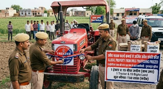 गुलाबपुरा थानाधिकारी संजय गुर्जर ने बताया कि चित्तौड़गढ़ जिले के बेंगू थाना क्षेत्र स्थित उमर गांव निवासी कुख्यात तस्कर लाभचन्द उर्फ लाभू (39) पुत्र कन्हैया लाल धाकड़ की अवैध संपत्तियों की वित्तीय जांच की गई। जांच में सामने आया कि आरोपी ने नशे के काले व्यापार से अर्जित रुपयों से अपने पैतृक गांव में कीमती जमीन और एक ट्रैक्टर खरीदा था, जिनका बाजार मूल्य करीब 50 लाख रुपये है। पुलिस ने एनडीपीएस (NDPS) एक्ट की धारा 68(F) के तहत इन संपत्तियों को फ्रीज कर दिया है। फ्रीज संबंधी दस्तावेज सफेमा (SAFEM) नई दिल्ली को भिजवाए गए हैं।