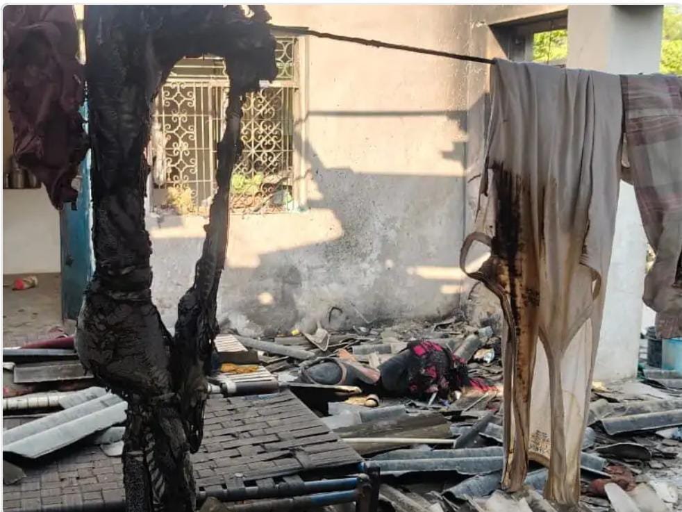 धमाका इतना जोरदार था कि घर के ऊपर लगे टीन शेड के परखच्चे उड़े|
