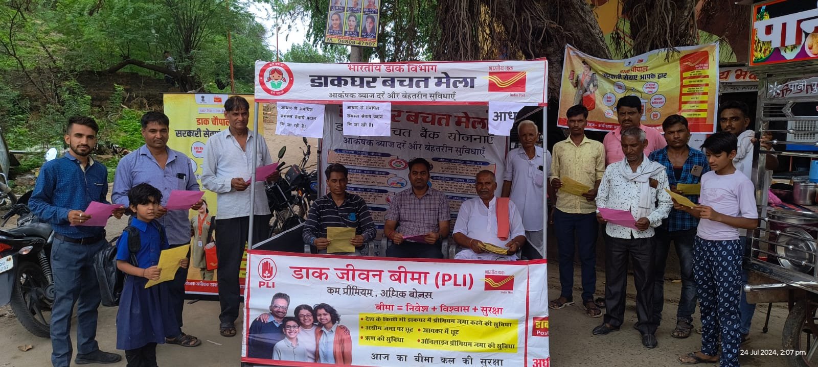 बनेड़ा । बनेड़ा के प्रताप चौक में उप डाकघर के द्वारा शाहपुरा उपखंड के डाक निरीक्षक अभिषेक जैन ,उप डाकपाल वरुण शर्मा मैल–ओवेसियर राकेश मीणा के निर्देशन में डाक चौपाल का आयोजन किया गया ।जिसमे ग्रामीणों को डाक विभाग की समस्त बचत खाता, आरडी खाता, सुकन्या समृद्धि योजना, पांच साल के छोटे बच्चो का आधार बनाने और मोबाइल अपडेशन , आरपीएलआइ पीएलआई के साथ आईपीपी के 555 में 10 लाख और 755 में 15 लाख के बीमे सहित सभी योजनाओं के ब्याज दर की जानकारी देते हुए अधिक से अधिक डाक विभाग की योजनाओ का लाभ लेने के लिए प्रोत्साहित किया गया तथा मौके पर ही चार लोगो के 15 लाख वाली पॉलिसी की गई। इस चौपाल में ग्रामीण डाक सेवक राजेश पारीक, रतनलाल भील, चंद्रशेखर तिवारी, विनोद भील, प्रकाश लोहार, विश्वाश सोनी, दुदा लाल गाडरी, महावीर वैष्णव, शांति लाल लौहार, देवाशीष छिपा पोस्टमैन हरिशंकर वैष्णव के साथ ग्रामीण लक्ष्मीलाल जी सोनी, चतर्भुज पारीक, रामेश्वर बैरवा सहित बड़ी संख्या में ग्रामीण उपस्थित रहे।