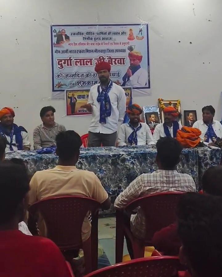 कार्यक्रम की अध्यक्षता रामजस मीणा ने की और मुख्य अतिथि शाहपुरा बनेड़ा कॉंग्रेस विधायक प्रत्याशी नरेंद्र कुमार रेगर ने कार्यक्रम में भाग लिया ।विशिष्ट अतिथि जिलाध्यक्ष सुरेश चंद्र घुसर,आसपा शाहपुरा जिलाध्यक्ष भेरूलाल रेगर बिजोलिया अध्यक्ष किशनलाल खटीक,मांडलगढ़ भीम आर्मी अध्यक्ष ओमप्रकाश खटीक प्रभारी रामेश्वर लाल बसेटिया ने कार्यक्रम में भाग लिया।