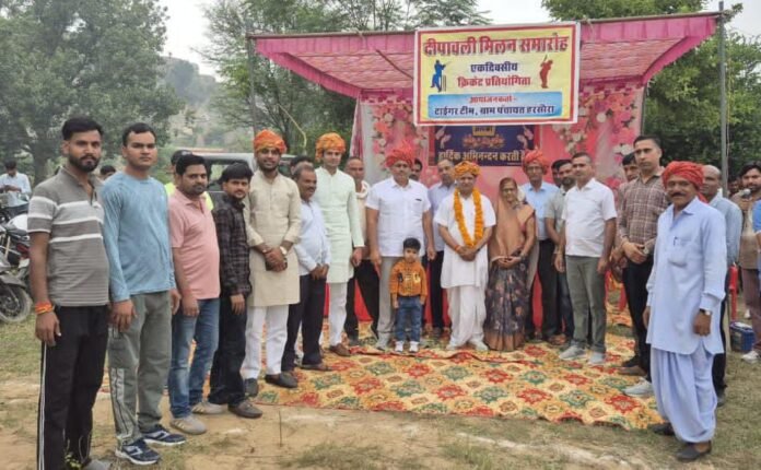 बानसूर।स्मार्ट हलचल|निकटवर्ती ग्राम पंचायत हरसौरा में टाईगर टीम हरसौरा द्वारा दीपावली मिलन समारोह व एक दिवसीय क्रिकेट प्रतियोगिता का आयोजन किया गया। राष्ट्रीय सुरक्षा परिषद् राजस्थान चैप्टर की स्थाई सदस्य रुकमणी कौशिक व नीमराना इंडस्ट्रीज एसोसिएशन के अध्यक्ष कृष्ण गोपाल कौशिक ने फीता काटकर कार्यक्रम का उद्घाटन किया। आयोजकों ने साफ़ा व माला पहनाकर कर अतिथियों का स्वागत किया।कौशिक ने कहा कि इस प्रकार के आयोजनों से आपसी भाईचारा और युवाओं की प्रतिभा को बढ़ावा मिलता है। क्रिकेट प्रतियोगिता में 8 टीमों ने भाग लिया । अतिथियों ने प्रतियोगिता में विजेता टीमों को ट्रॉफी देकर सम्मानित किया। इस मौके पर प्रकाश शर्मा, सरपंच रमेश अम्बावत, नितिन यादव, महेश प्रधान, मुकेश चौधरी, बाबूलाल, हंसा गुर्जर,नेतराम अम्बावत, प्रकाश सैनी, प्रभुदयाल, राजेश जांगिड़ सहित ग्रामीण मौजूद रहें।