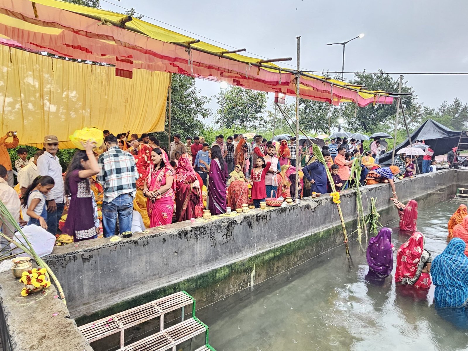 सुबह से हल्की-फुल्की बारिश और ठंडी हवाओं के बावजूद श्रद्धालुओं के जोश में कोई कमी नहीं दिखी। पूर्वांचल जन चेतना सेवा समिति की ओर से घाटों पर सुबह से ही तैयारियों का दौर जारी था। समिति के पदाधिकारी और सदस्य पूरे समर्पण भाव से व्यवस्था संभाले रहे — ताकि किसी भी व्रती को अशुद्धता, असुविधा या गंदगी का सामना न करना पड़े।