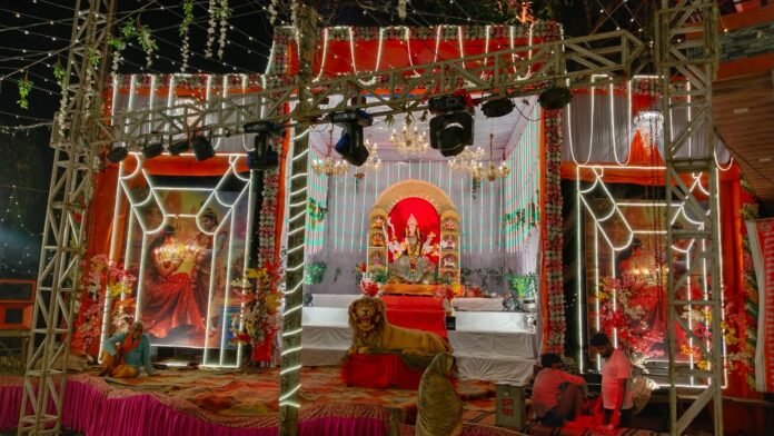 स्मार्ट हलचल|नाहरगढ़ कस्बे सहित क्षेत्र में नवरात्रि उत्सव बड़ी धूमधाम से मनाया जा रहा है नवरात्रि उत्सव के दौरान कस्बे सहित क्षेत्र में मां दुर्गा के पंडाल सजाए गए हैं जहां मां दुर्गा के दर्शनों के लिय साय काल श्रद्धालुओं की भीड़ उमड ने लगी है