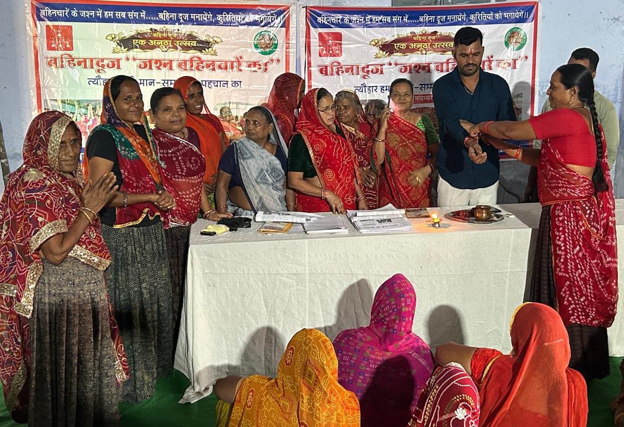 पंडेर:- उपतहसील पंडेर कस्बें में ब्लॉक स्तरीय एकल नारी शक्ति संगठन की बैठक आयोजित हुई। संगठन कार्यकर्ता रेखा पाराशर ने बताया कि रविवार को कस्बें में बहिना दूज के अवसर पर एकल नारी शक्ति संगठन की बैठक रखी गई। जिसमें मुख्य अतिथि समाजसेवी मुकेश जाट रहें। मुख्य अतिथि द्वारा दीप प्रज्जवलित कर बैठक का शुभारंभ किया। बैठक में कई एकल महिलाओं ने भाग लिया। जिसमें एकल नारियों के सशक्तिकरण पर जोर दिया। बालिकाओं व महिलाओं पर हो रहें अत्याचारों के खिलाफ लड़ाई लड़ने के लिए जागरूक किया। महिलाओं को गुड टच बेड टच के बारे में विस्तार से समझाया गया। समाजसेवी मुकेश जाट ने महिलाओं को सहयोग व उनके सम्मान को बढ़ावा देने की बात कहीं। महिलाओं पर अत्याचार के खिलाफ आवाज उठाने व उनको सहयोग का भरोसा दिया। बैठक में एकल महिलाओं को रोजगार दिलाने पर चर्चा की। मंच संचालन संगठन की कार्यकर्ता कोषाध्यक्ष लाली धाकड़ ने किया। सभी महिलाओं को झांसी की रानी बनकर अत्याचारों के खिलाफ आवाज उठाने के प्रेरित किया। बैठक में महिलाओं पर ही रहें यौन हिंसा व छेड़छाड़ के खिलाफ आवाज उठाने व जुर्म के खिलाफ लड़ने के लिए जागरूकता होने पर विशेष जोर दिया। सभी महिलाओं को भी आपस में मिलजुल कर रहने के साथ अपने आत्म सम्मान के साथ बेहतर जीवन जीने की सलाह गई हैं। इस दौरान महिलाओं ने एकता के नारे भी लगाए। सभी एकल महिलाओं ने आपस में रक्षा सूत्र बांधकर प्रतिज्ञा कर संकल्प लिया। सभी महिलाओं ने समाजसेवी मुकेश जाट की कलाई पर रक्षा सूत्र बांधा। तत्पश्चात सभी एकल महिलाओं ने सामूहिक भोजन किया।