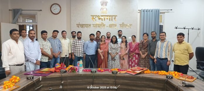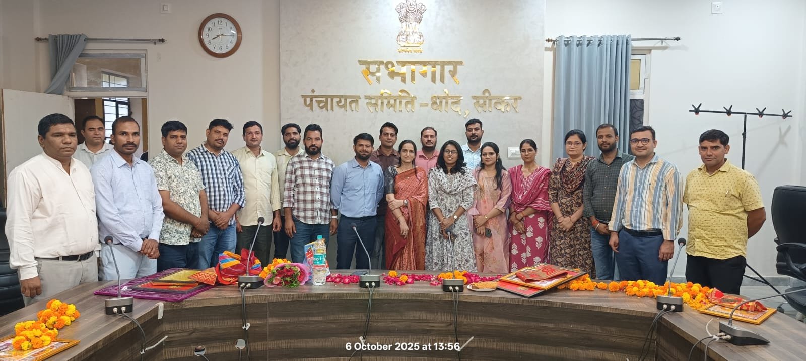 स्मार्ट हलचल|आज पंचायत समिति धोद में कार्यरत प्रोग्रामर प्रियंका चौधरी की विभागीय पदोन्नति में उपनिदेशक (एसीपी )के पद पर प्रमोशन होने पर पदस्थापन विज्ञान एवं प्रोधोगिकी विभाग जयपुर में होने पर विदाई समारोह का आयोजन किया गया, प्रियंका चौधरी ने प्रोग्रामर के पद पर 10 वर्ष सें अधिक सेवाएं पंचायत समिति धोद में दीं, इनका कार्यकाल काफी सराहनीय रहा, तथा इन्होने आमजन के प्रति हमेशा सहयोगात्मक रवेया रखा, इस अवसर पर कार्यालय स्टाफ द्वारा स्मृति चिन्ह व बाबा खाटूश्याम का दुपट्टा ओढ़ाकर प्रियंका चौधरी का सम्मान किया गया, इस कार्यक्रम में धोद विकास अधिकारी रश्मि मीणा, उपनिदेशक प्रियंका चौधरी, प्रोग्रामर विद्याधर बेरवाल, विजय सोनी, आईटी यूनियन जिलाध्यक्ष राकेश थालोड़, अरविन्द चौधरी, हरलाल कुलरिया, संजय धुवारिया, बीएसओ कृष्ण जांगिड़, मनीषा खिरिया, महेंद्र कुमावत, नरेंद्र वर्मा, अशोक कुलहरी, नितिन बाहेती, संदीप नायक, अजय सैन, तरुण शर्मा, सुरेन्द्र, राजेश, विमला, मूमल, कमलेश सहित बड़ी संख्या में पंचायत समिति के अधिकारी कर्मचारी उपस्थित रहे, कार्यक्रम का संचालन आईटी यूनियन के प्रवक्ता संजय धुवारिया ने किया !