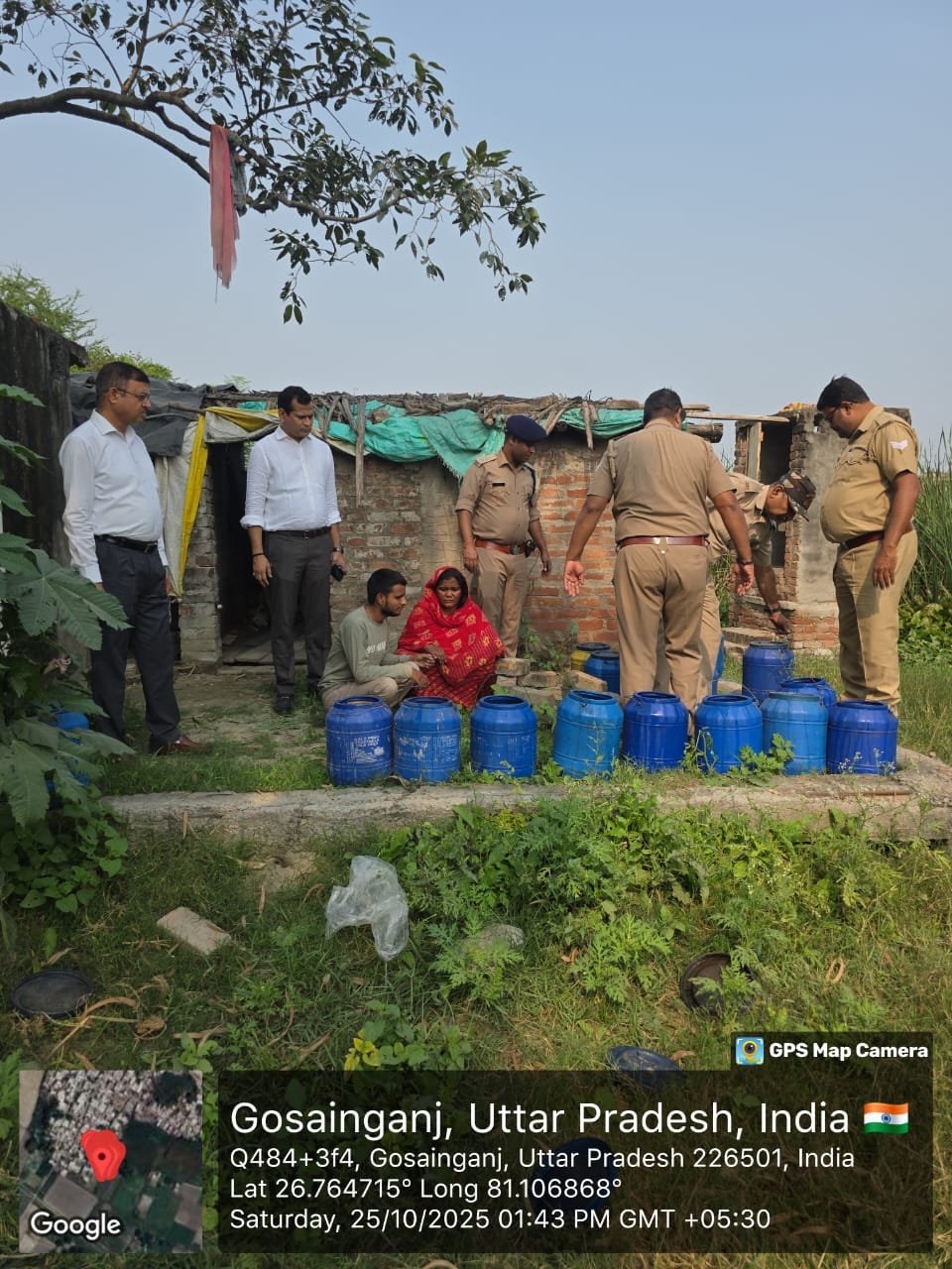 लखनऊ।स्मार्ट हलचल|अवैध शराब के खिलाफ आबकारी विभाग की बड़ी कार्रवाई हुई है। गोसाईगंज क्षेत्र के ग्राम बलियाखेड़ा में छापेमारी कर 15 लीटर अवैध कच्ची शराब बरामद की गई और 600 किलोग्राम लहन नष्ट किया गया। इस मामले में आबकारी अधिनियम के तहत एक अभियोग पंजीकृत किया गया है।
