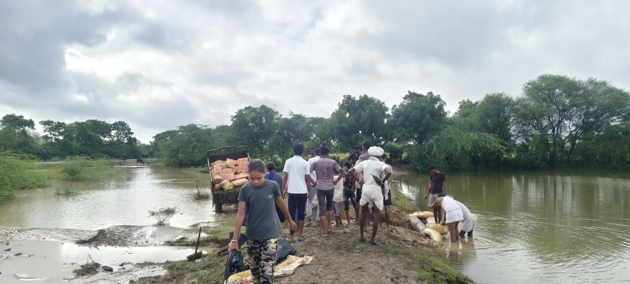 शाहपुरा@स्मार्ट हलचल|उपखंड क्षेत्र में लगातार हो रही बारिश से कई गांवों में जलभराव व कच्चे मकानों के धराशाही होने तथा नदी नालों में तेज पानी की आवक से हालात चिंताजनक हो गए हैं ।प्रशासक राधा राजू गाडरी ने बताया कि लगातार हो रही भारी बारिश के चलते ईटमारिया क्षेत्र में बाढ़ जैसे हालात बने हुए हैं। देवनाड़ी की पाल टूटने से ग्राम पंचायत मुख्यालय सहित कांशीराम जी का खेड़ा, उमेदनगर, नाहरगढ़ का जिला मुख्यालय व उपखंड शाहपुरा से संपर्क पूरी तरह टूट चुका है ।ईटमारिया व करमडास क्षेत्र में नाले उफान पर हैं और आमजन का जीवन अस्त-व्यस्त हो गया है।संतोषपुरा बस्ती में नया तालाब का पानी घुस गया है।ग्राम पंचायत ईटमारिया द्वारा तालाब का नाला काटकर पानी की निकासी का प्रयास किया गया है जबकि नाहरगढ़ एनिकट का पानी बस्ती में प्रवेश करने लगा है। उमेदनगर की तरफ से भी नाले को काटकर पानी निकासी की जा रही है।लसाडिया, सरदारनगर, जोरावर पुरा के तालाबों की चादरों से जबरदस्त पानी की आवक के कारण खेतों में पानी भर गया है और फसलों को भारी नुकसान हुआ है।