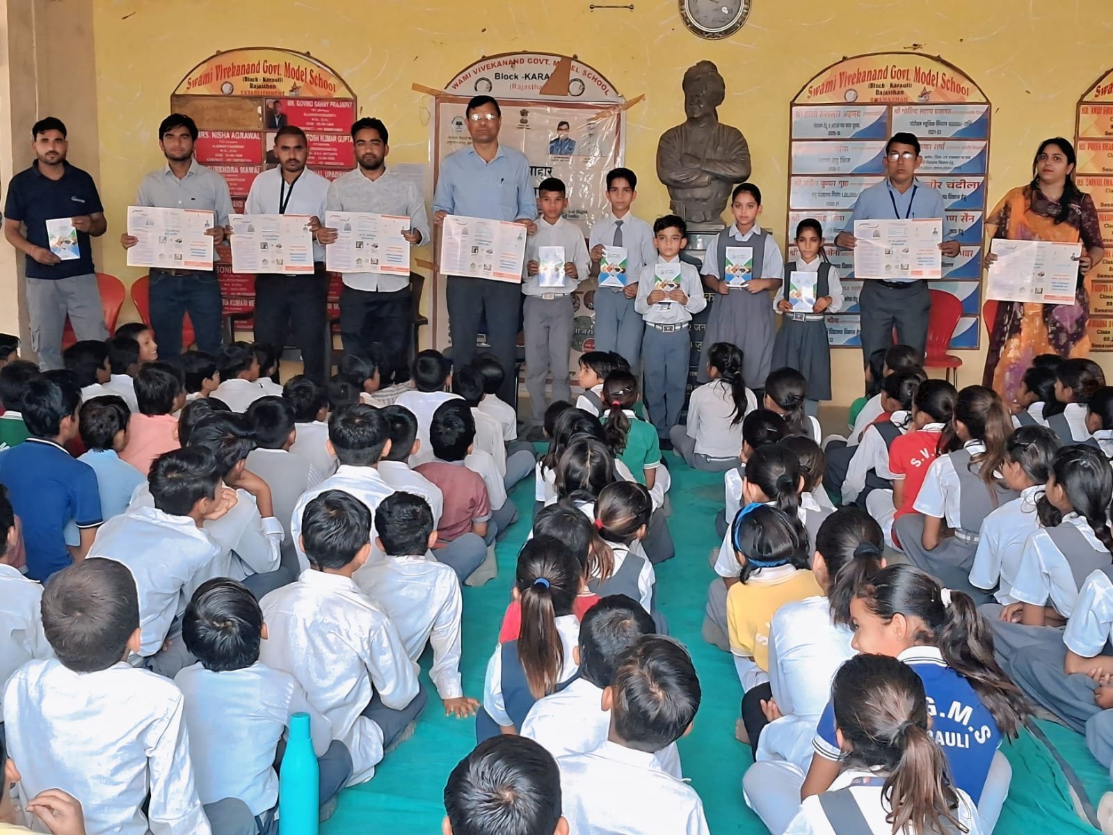 राज्य में चलाई जा रहे राज्य सरकार के अभियान”शुद्ध आहार मिलावट पर वार”के तहत ईंट राईट स्कूल अभियान के तहत आज स्वामी विवेकानंद राजकीय मॉडल स्कूल ब्लॉक करौली में खाद्य सुरक्षा विभाग की तरफ से वीकेश कुमार मीणा,विनोद कुमार मीणा और यशवेंद्र चतुर्वेदी ने विद्यार्थियों को खाद्य सुरक्षा के वारे में जानकारी प्रदान की। प्रधानाचार्य गोविंद सहाय प्रजापत ने बताया कि टीम के द्वारा हाइजीन एवं मानसिक स्वास्थ्य,कोल्ड ड्रिंक का सेवन ना करने,घरेलू पेय पदार्थ जैसे छाछ,दूध,दही,नींबू पानी का प्रयोग अधिक करने,फास्ट फूड,जंक फूड से होने वाली खतरनाक बीमारियों,अपने भोजन में फलों,हरी सब्जियां,मिलेट्स (बाजरा,मक्का)दालें,ताजे मौसमी फल को शामिल करने।पैकेज फूड पर ट्रांसफैट फ्री,लेबल देखकर उपयोग करना,खान-पान में चीनी,नमक की मात्रा कम करना अधिक चीनी और नमक के प्रयोग से होने वाले दुष्परिणाम और संतुलित आहार लेने के बारे में विद्यार्थियों को जानकारी प्रदान की।इस अवसर पर मॉडल स्कूल करौली की तरफ से राजेश कुमार मीणा,सोहन पाल जाटव,मुकेश कुमार मीणा दिनेश राघव व समस्त स्टाफ उपस्थितरहा।