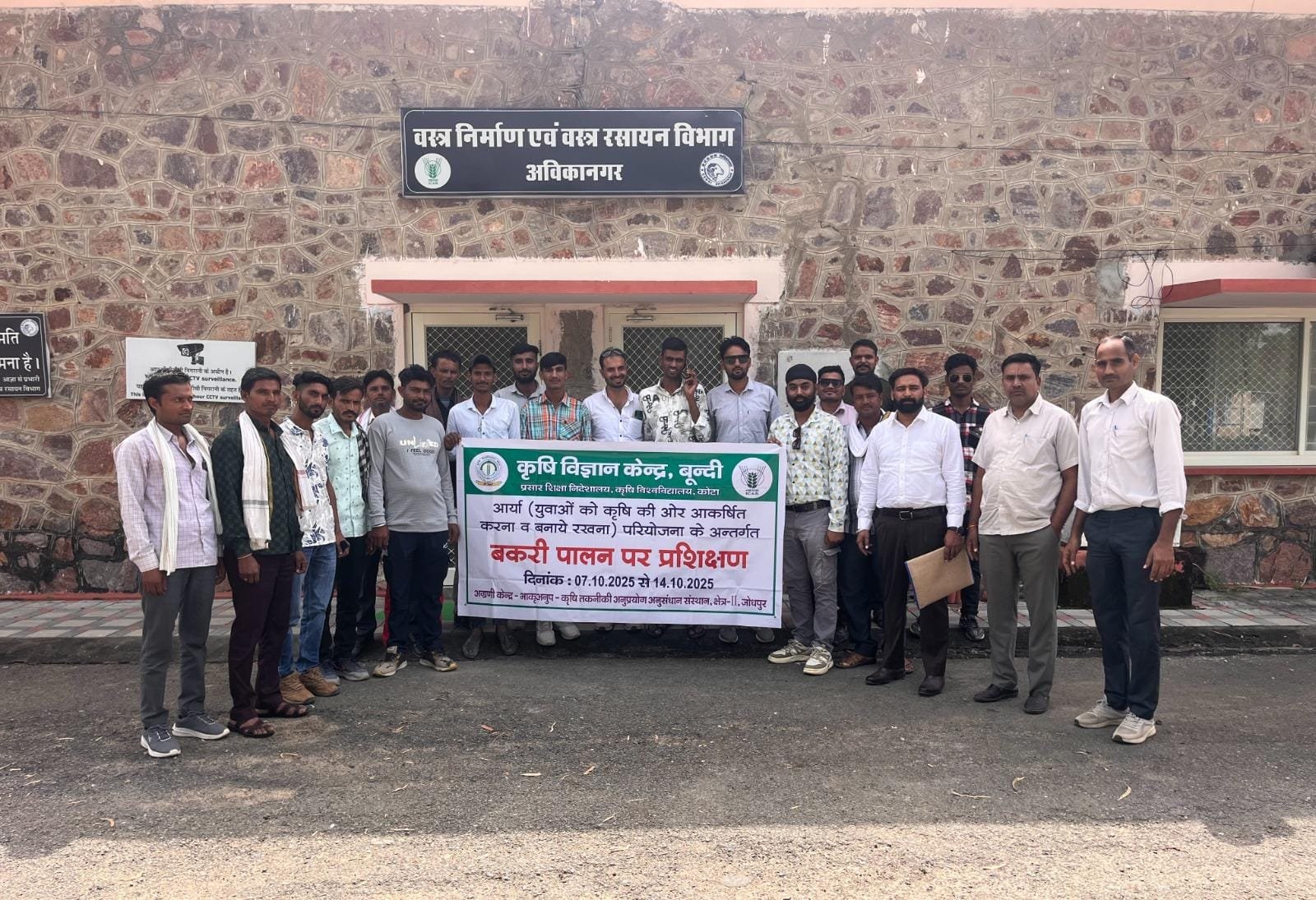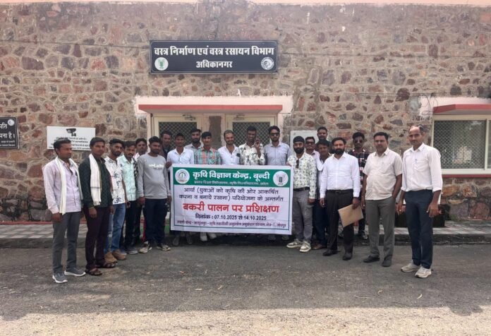 बूंदी- स्मार्ट हलचल|कृषि विज्ञान केन्द्र, बून्दी में मंगलवार को आर्या परियोजना के अन्तर्गत द्वितीय चरण का आठ दिवसीय बकरी पालन प्रशिक्षण सम्पन्न हुआ। जिसमें बून्दी जिले के 25 प्रशिक्षणार्थियों ने भाग लिया। डॉ. नीरज हाड़ा, वरिष्ठ वैज्ञानिक ने कृषकों को सम्बोधित करते हुए बताया कि बेरोजगार युवाओं के लिए बकरी पालन एक लाभकारी व्यवसाय बन सकता हैं। बकरी पालन करने पर इससे दूध, मांस व खाद प्राप्त होती है। जिसका विपणन करके अच्छी आय अर्जित की जा सकती हैं। इसलिए बकरी पालन को व्यवसाय के रुप में अपनाकर रोजगार का साधन बनाया जा सकता हैं।