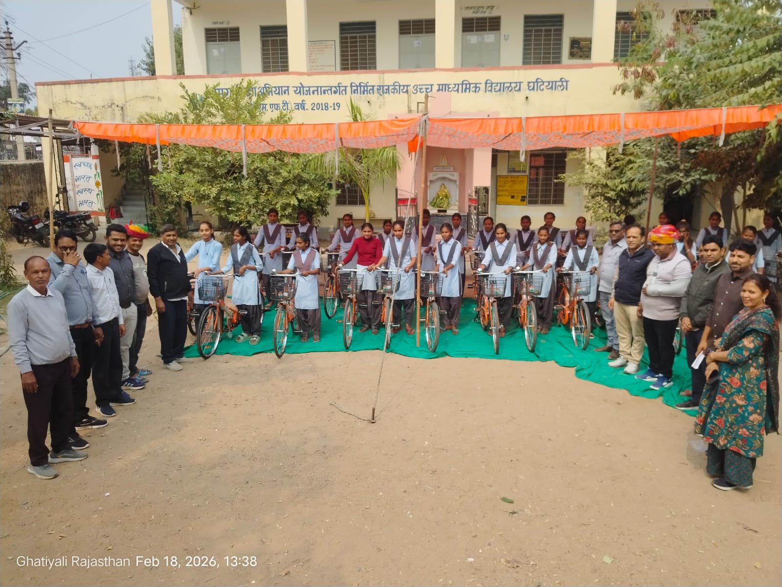 सावर(अजमेर)@स्मार्ट हलचल|क्षेत्र के राजकीय उच्च माध्यमिक विद्यालय घटियाली में बुधवार को राज्य सरकार की योजना के तहत कक्षा 9वीं की 26 छात्राओं को साइकिलें वितरित की गई। कार्यक्रम में छात्राओं के चेहरे पर उत्साह और आत्मविश्वास झलकता नजर आया।