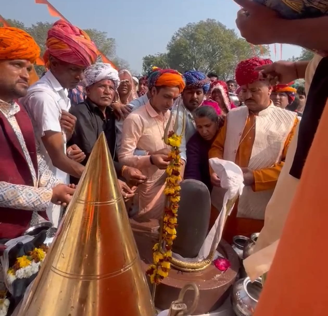 मंगरोप।हलेड़ में नव निर्मित श्री जल शंकर महादेव मंदिर परिसर में पंचकुटी महायज्ञ एवं मूर्ति प्राण-प्रतिष्ठा का भव्य आयोजन श्रद्धा,भक्ति और वैदिक विधियों के साथ संपन्न हुआ।कार्यक्रम में मोहन शरण जी शास्त्री महाराज(निंबार्क आश्रम),बनवारी शरण जी महाराज(श्री काठिया बाबा आश्रम),संतदास जी महाराज(हाथी भाटा आश्रम),मोनी बाबा(किर की चौकी आश्रम)लाल बाबा जी महाराज पंचमुखी रीको एरिया) आदि सहित अनेक संत-महात्माओं की गरिमामयी उपस्थिति रही।महायज्ञ के यज्ञाचार्य मुरली मनोहर शर्मा रहे,वहीं ज्योतिषाचार्य अंबालाल जाट द्वारा संपूर्ण अनुष्ठान एवं वैदिक मंत्रोच्चारण के साथ विधिवत पूर्ण कराया गया।आयोजन के दौरान भगवान भोलेनाथ की आराधना,हवन-यज्ञ,पूजन एवं मूर्ति प्राण-प्रतिष्ठा के कार्यक्रम संपन्न हुए,जिससे समूचे क्षेत्र का वातावरण भक्तिमय हो उठा।कार्यक्रम के मुख्य अतिथि भीलवाड़ा संसद दामोदर अग्रवाल रहे।विशेष अतिथि के रूप में माण्डल विधायक उदयलाल भड़ाना,जिला अध्यक्ष प्रशांत मेवाड़ा,लाड देवी आचार्य प्रशासक एवं समाजसेवी बालू लाल आचार्य उपस्थित रहे।अतिथियों ने आयोजन की भूरि-भूरि प्रशंसा करते हुए इसे सामाजिक समरसता और सांस्कृतिक चेतना को सुदृढ़ करने वाला बताया।आयोजन के समापन पर विशाल भंडारे का आयोजन किया गया,जिसमें करीब 10,000 श्रद्धालुओं ने भोजन प्रसाद ग्रहण किया।