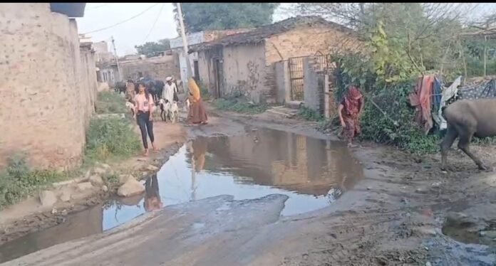 गुरलां। सेधुरिया पंचायत के वार्ड नंबर 10 व 11 सोपुरा में सड़क पर भरा नालियों का गंदा पानी।