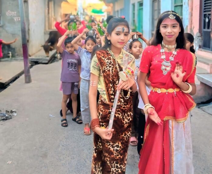 हमीरगढ़ में गणगौर की पारम्परिक रौनक शुरू,सेवरा सजाकर गीत गातीं कन्याएं,नई पीढ़ी में घटती परंपरा पर चिंता