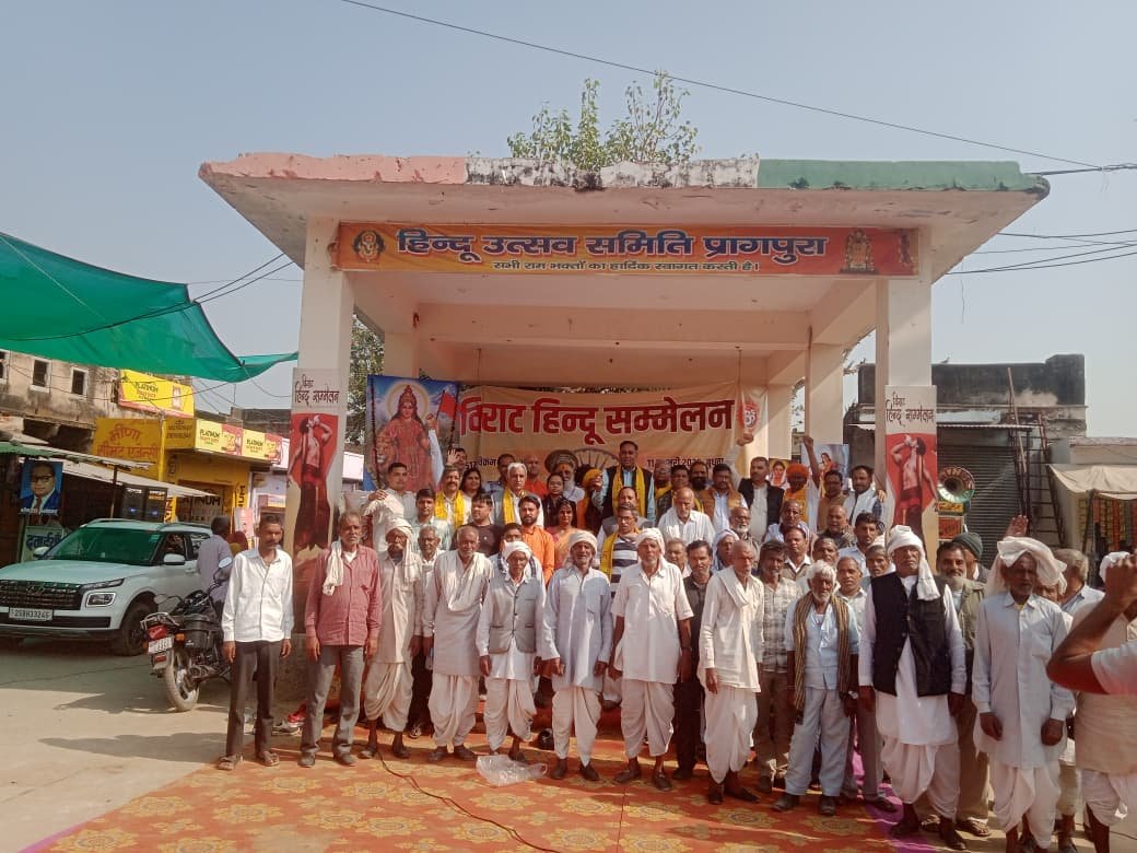 पावटा,स्मार्ट हलचल|प्रागपुरा कस्बे के सुभाष चौक पर बुधवार को संघ शताब्दी वर्ष के अवसर पर हिंदू सम्मेलन का आयोजन झीड़ा वाला बालाजी मंदिर पुजारी सोहनलाल शर्मा की अध्यक्षता में हुआ। जिसमें क्षेत्र के साधु संतों व सामाजिक संगठनों के कार्यकर्ताओं ने प्रतिभाग किया। सम्मेलन के मुख्य वक्ता प्रांत गौसेवा प्रमुख मोहन सिंह ने सनातन और हिंदुत्व के पांच आधार स्तंभ—सामाजिक समरसता, कुटुंब प्रबोधन, पर्यावरण संरक्षण, नागरिक कर्तव्य और ‘स्व’ आधारित जीवन शैली का उल्लेख करते हुए इन्हें समाज संगठन की दिशा में आवश्यक बताया। नृसिंह मंदिर महंत मणीदास महाराज ने समाज से जाति, क्षेत्र और भाषा के भेदभाव से ऊपर उठकर एकजुट होने तथा भारतीय संस्कृति और परंपराओं की रक्षा के लिए समाज को मूल्यों पर संगठित करने का आह्वान किया। इस कार्यक्रम का आयोजन हिन्दू उत्सव समिति द्वारा किया गया, जिसमें बड़ी संख्या में स्वयंसेवकों, युवाओं, महिला और नागरिकों ने भाग लिया। कार्यक्रम में समिति अध्यक्ष बजरंग लाल चौधरी, उपाध्यक्ष ललित गोयल, कोषाध्यक्ष रामनिवास सैनी, सचिव रतिपाल सिंह शेखावत, राजेन्द्र वशिष्ठ , अपर्णा अग्रवाल, सरोज यादव आदि समिति सदस्यों ने मंच पर उपस्थित अतिथियों व सामाजिक संस्थाओं के कार्यकर्ताओं का अंगवस्त्र भेंट कर सम्मान किया। उपस्थित जनसमूह ने सनातन धर्म आधारित सेवा व राष्ट्र निर्माण में सक्रिय योगदान देने का संकल्प लिया। इस मौके पर महंत परशुरामदास महाराज, हरिदास महाराज, रघुवीरदास महाराज सहित बड़ी संख्या में मातृ शक्ति व ग्रामीण उपस्थित रहे।