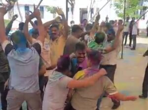 होली के दिन ड्यूटी निभाई अगले दिन जमकर गुलाल उड़ाई, एसपी ने पुलिस कर्मियों के साथ खेली होली, डीजे पर जमकर थिरके अधिकारी और जवान