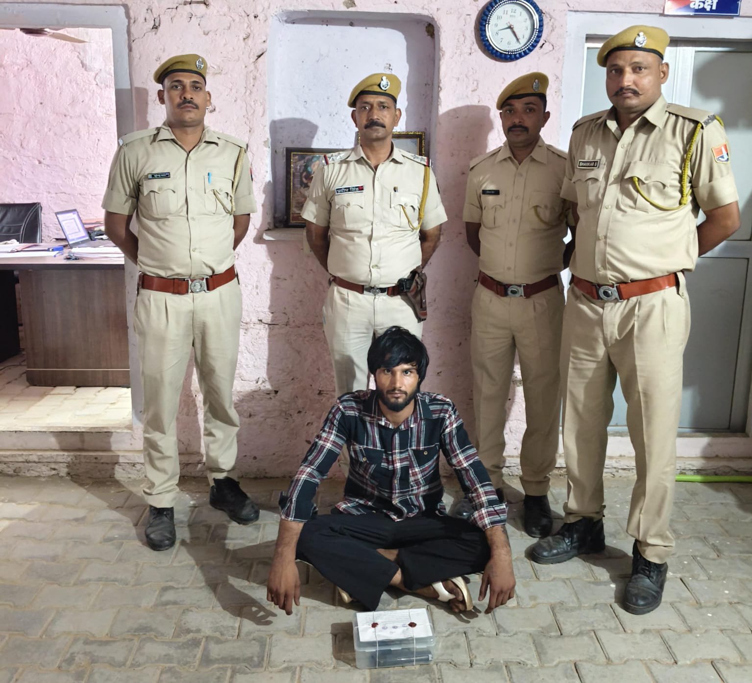 बानसूर।स्मार्ट हलचल|बासदयाल थाना पुलिस ने एरिया डोमिनेशन अभियान के तहत कार्यवाही करते हुये अवैध हथियार रखने वालें आरोपी कों गिरफ्तार किया हैं। थाना प्रभारी प्रदीप सिंह ने बताया कि मुखबिर की सूचना पर थाना क्षेत्र के बास शेखावत के जंगल में लालपुरा जाने वाले कच्चा रास्ते पर आरोपी दशरथ गुर्जर माण्डली का पिछा कर बास शेखावत के जंगल से पकड कर तलाशी ली। पुलिस ने आरोपी के क़ब्ज़े से पुलिस ने अवैध देशी पिस्टल 7.65 एमएम बोर को जब्त किया हैं।आरोपी के विरुध अलग-अलग थानों में विभिन्न धाराओं कुल 4 प्रकरण दर्ज है तथा आरोपी संगठित अपराधी व ओम नमः शिवाय गैंग का सकिय सदस्य है।