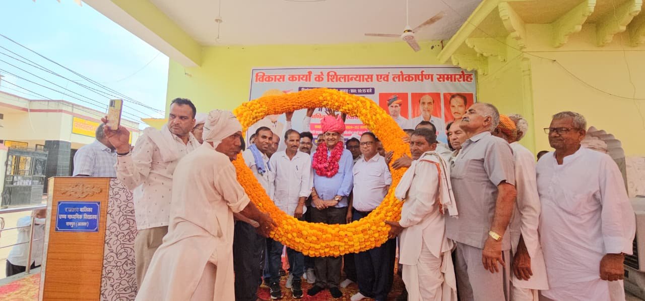 बानसूर।स्मार्ट हलचल|विधायक देवीसिंह शेखावत ने रामपुर, सबलपुरा और कल्याणपुरा ग्राम पंचायतों में करीब 4 करोड़ रुपए के विकास कार्यों का उद्घाटन औंर शिलान्यास किया। ग्रामीणों ने 51 किलो की फूल माला पहनाकर विधायक का स्वागत किया। विधायक शेखावत ने सबलपुरा ग्राम पंचायत में 62.50 लाख रुपए की लागत से बनी रामपुर रोड से मंगलवा तक की सड़क का उद्घाटन किया तों वहीं ग्राम पंचायत रामपुर में 1.45 करोड़ रुपये की लागत से निर्मित रामपुर से गुड़ा तक की सड़क का लोकार्पण किया। इसी तरह रामपुर कस्बे में 1.88 करोड़ रुपए की लागत से बनने वाले अटल पथ का शिलान्यास भी किया।इस दौरान ग्रामीणों ने विधायक को कन्या महाविद्यालय खोलने की मांग को लेकर एक ज्ञापन सौंपा। विधायक शेखावत ने क्षेत्र में कन्या महाविद्यालय की स्थापना के लिए हरसंभव प्रयास करने का आश्वासन दिया। शेखावत ने कहा कि बानसूर विधानसभा क्षेत्र में 150 करोड़ रुपये से अधिक के विकास कार्य प्रगति पर हैं और आने वाले समय में क्षेत्र के प्रत्येक गांव तक विकास पहुंचाया जाएगा। इस मौके पर एसडीएम अनुराग हरित, रामपुर ग्राम पंचायत सरपंच मुकेश जिलोवा, सबलपुरा सरपंच विजेंद्र यादव, कल्याणपुरा सरपंच हरफूल मीणा, पंचायत समिति सदस्य रामवतार शर्मा, पीडब्ल्यूडी अधिकारी शेरसिंह मीणा, भूपेन्द्र चौहान, ओमपाल चौहान, रामेश्वर दयाल शर्मा सहित बड़ी संख्या में ग्रामीण मौजूद रहे।