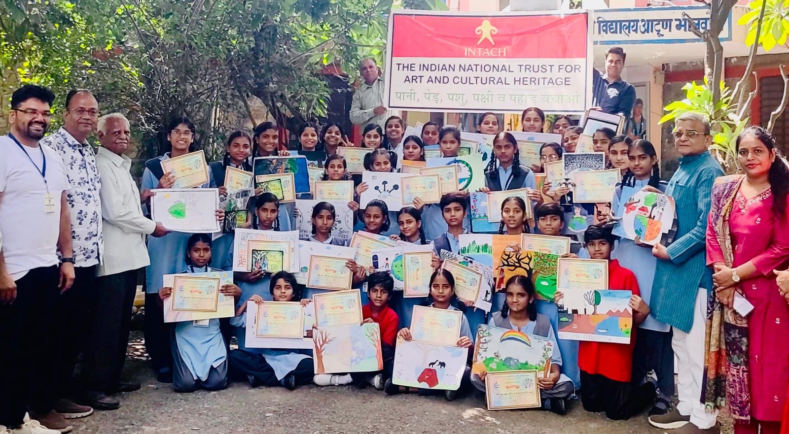 भीलवाड़ा । इंडियन नेशनल ट्रस्ट फॉर आर्ट एंड कल्चरल हेरिटेज (इंटैक) भीलवाड़ा चेप्टर की ओर से वन्य जीव संरक्षण सप्ताह के तहत डॉ. भी.अं.रा.बा.मा. विद्यालय में पोस्टर प्रतियोगिता का आयोजन किया गया। तीन अलग अलग विद्यालयों में आयोजित प्रतियोगिता में कुल 176 छात्र-छात्राओं ने उत्साहपूर्वक भाग लेकर वन्यजीवों की सुरक्षा और पर्यावरण संतुलन का संदेश अपने चित्रों के माध्यम से दिया।