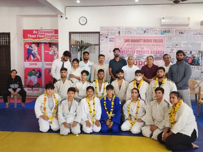 भरतपुर|स्मार्ट हलचल|टैक्नोलॉजी पार्क स्थित श्री हरिदत्त डिग्री कॉलेज के तत्वाधान में अन्तर महाविद्यालय जूडो प्रतियोगिता का आयोजन सचिव एडवोकेट अलभ्य शर्मा की अध्यक्षता में किया गया, जिसमें भरतपुर, डीग व धौलपुर के महाविद्यालयों के प्रतियोगियों ने भाग लिया।