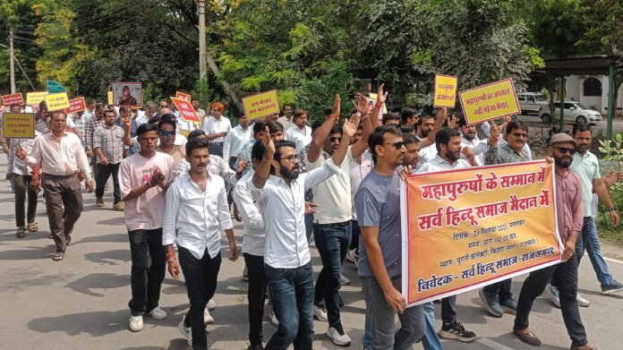 वीरभूमि मेवाड़ की अस्मिता से खिलवाड़ पर राजसमन्द ने प्रदर्शन, कुलपति सुनीता मिश्रा को तत्काल पद से हटाकर कठोर कानूनी कार्रवाई सुनिश्चित की जाए – हिन्दू समाज