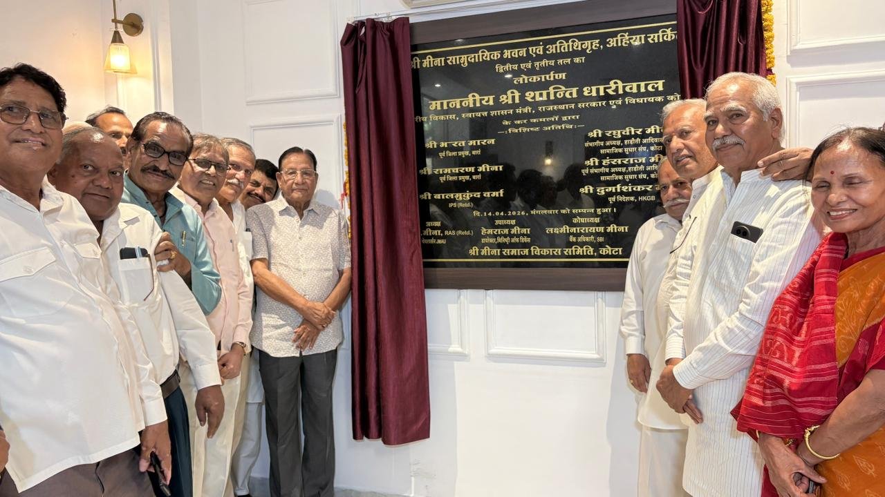 कोटा, 14 अप्रैल 2026। स्मार्ट हलचल|श्री मीना समाज विकास समिति, कोटा द्वारा संचालित श्री मीना सामुदायिक भवन एवं अतिथिगृह, श्रीनाथपुरम के द्वितीय एवं तृतीय तल का लोकार्पण आज मुख्य अतिथि पूर्व नगरीय विकास एवं स्वायत्त शासन मंत्री एवं विधायक श्री शांति धारीवाल के करकमलों द्वारा किया गया।
