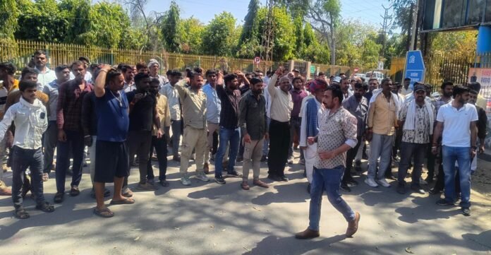 जिंदल के खिलाफ विधायक कलेक्ट्रेट पर सैकड़ों लोगों का प्रर्दशन, प्रबंधन पर डराने धमकाने तक के आरोप