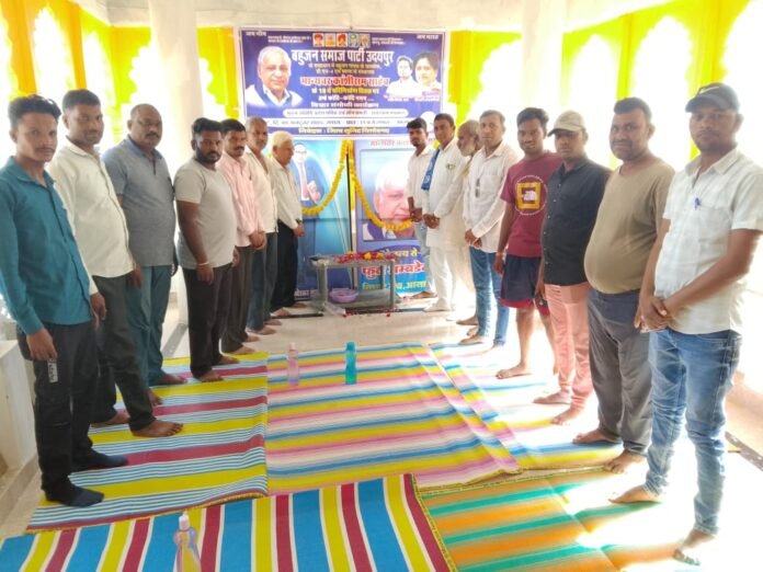 भदेसर @स्मार्ट हलचल|बहुजन नायक बामसेफ DS4 एवं बहुजन समाज पार्टी के संस्थापक कांशीराम साहब के 19वें परिनिर्वाण दिवस पर आवरी माता में बसपा के प्रदेश सचिव एवं जॉन प्रभारी राधेश्याम मेघवाल के मुख्य अतिथि में संपन्न हुई। उक्त विचार संगोष्ठी में जिला अध्यक्ष घीसूलाल, जिला प्रभारी गंगाराम मेघवाल, पूर्व जिला प्रभारी बालू नायक, श्यामलाल जाट, सुनील लोहार, सोहन बिलड़ी, लोकेश भीमनगर, प्रेम उठेल खेड़ा, नेतराम, लक्ष्मीलाल मेघवाल, डॉ. शांतिलाल राठौड़, नरेश खटीक, सोनू खटीक, आदि वक्ताओं ने विचार व्यक्त किये।उक्त विचार गोष्ठी को संबोधित करते हुए प्रदेश सचिव एवं जोन प्रभारी राधेश्याम मेघवाल ने बहुजन नायक कांशीराम साहब के जीवन पर प्रकाश डालते हुए उनके बताएं रास्ते पर चलने का आवाहन किया। फुले अंबेडकर विचार मंच के संयोजक शंकरलाल मेघवाल बिलड़ी नें काशीराम साहब को भारत रत्न देने की भारत सरकार से मांग की।