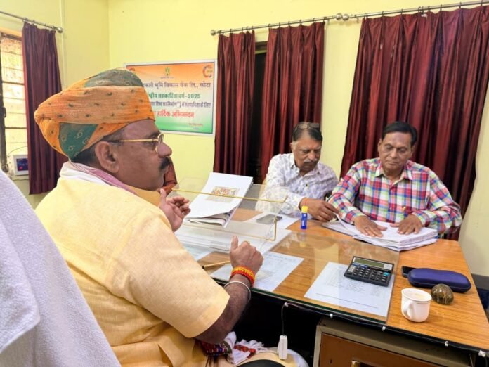 कोटा, 15 अप्रैल।स्मार्ट हलचल|कोटा सहकारी भूमि विकास बैंक लिमिटेड द्वारा संचालित मुख्यमंत्री अवधिपार ब्याज राहत एकमुश्त समझौता योजना 2025-26 के तहत जिले में किसानों को बड़ी आर्थिक राहत मिली है। योजना के अंतर्गत बीते 20 से 35 वर्षों से लंबित बकाया खातों का निस्तारण करते हुए 383 किसानों को कुल ₹9 करोड़ 60 लाख की राहत प्रदान की गई है, ऋण राहत वसूली में मभूमि विकास बैंक कोटा जोन मे प्रथम आया है.