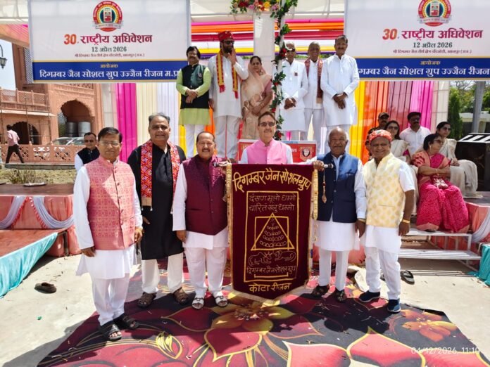 अधिवेशन का शुभारंभ आर.के. मीना जैन (उज्जैन) द्वारा मुख्य ध्वजारोहण के साथ हुआ, जबकि विशेष ध्वजारोहण जे.के. जैन एवं सुरेश हरसोरा द्वारा कोटा मेन ग्रुप और अनुभव ग्रुप के माध्यम से किया गया। इस अवसर पर पूर्व केंद्रीय मंत्री प्रदीप जैन आदित्य एवं चांदखेड़ी क्षेत्र अध्यक्ष हुकुम जैन ‘काका’ विशेष रूप से उपस्थित रहे।