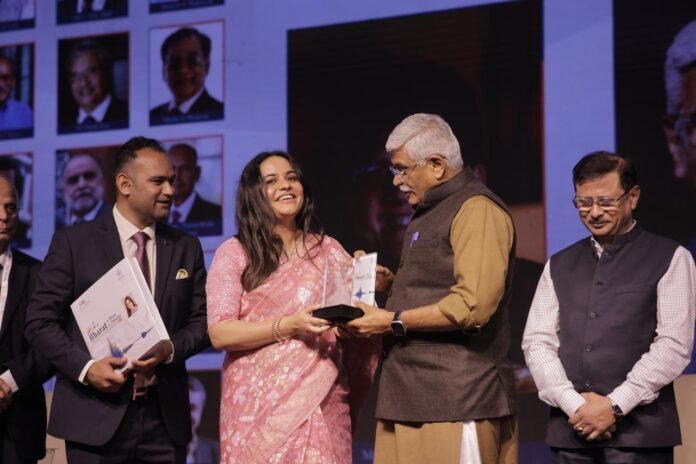 कोटा।स्मार्ट हलचल|हाड़ौती की पारंपरिक शिल्प विरासत को राष्ट्रीय राजधानी में नई पहचान मिली है। नई दिल्ली में आयोजित “ज्वेल्स ऑफ़ इंडिया – भारत की शान, भारत का अभिमान” समारोह में केंद्रीय संस्कृति एवं पर्यटन मंत्री गजेंद्र सिंह शेखावत ने कोटा की ‘सोनचिरैया’ ब्रांड की सह-संस्थापक प्रीति सिंह पारीक को कोटा की पारंपरिक ज़री साड़ी को अंतरराष्ट्रीय मंच पर प्रतिष्ठित पहचान दिलाने के लिए सम्मानित किया।