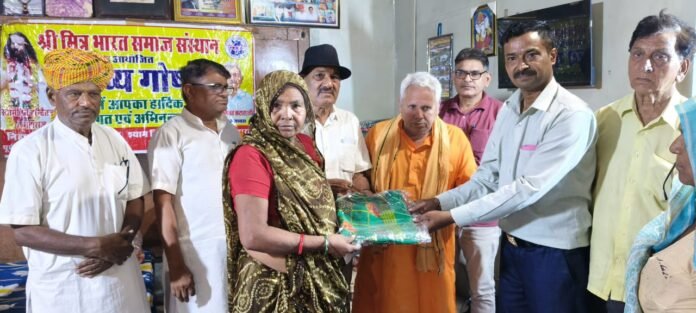 स्मार्ट हलचल|भरतपुर स्वर्गीय भगवत कटारा की पुण्यतिथि पर आज बाबू राजबहादुर मेमोरियल अस्पताल में श्री मित्र भारत समाज संस्थान द्वारा मरीजों को फल व बिस्किट वितरित किए गए ।कुलदीप कटारा ने बताया गया इस अवसर पर डॉक्टर विवेक भारद्वाज, श्याम सिंह जघीना महामंत्री ,कुलदीप कटारा राष्ट्रीय अध्यक्ष, जगबीर सिंह ठेकेदार जघीना समाजसेवी, चंद्रभान माहौर आदि ने सभी वार्डो पर फल वितरण किए ।साथ ही संस्था के कार्यालय पर 51 गरीब महिलाओं को साड़ी वितरण की गई इस कार्यक्रम के मुख्य अतिथि साहित्यकार सोमदत्त व्यास थे। अध्यक्षता ताराचंद चिचाना द्वारा की गई।डॉक्टर राजेंद्र शर्मा समाजसेवी व श्याम सिंह जघीना थे ।कार्यक्रम का संचालन नरेंद्र निर्मल ने किया ।आभार कुलदीप कटारा ने व्यक्त किया।
