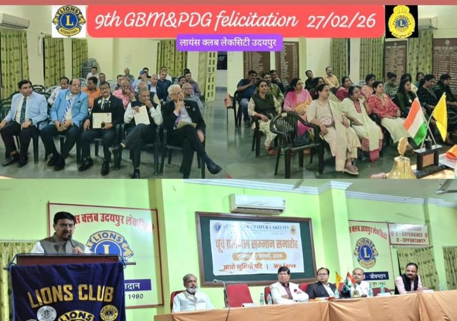 उदयपुर |स्मार्ट हलचल|क्लब प्रवक्ता डॉ. मीना बाबेल ने बताया कि लायंस क्लब उदयपुर लेक सिटी द्वारा आयोजित अष्टम सामान्य सभा के अवसर पर क्लब अध्यक्ष श्री सिद्धार्थ चतुर के सान्निध्य में पूर्व प्रांतपाल सम्मान समारोह का भव्य आयोजन किया गया।