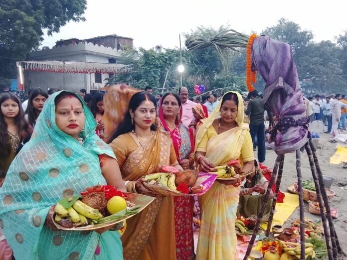 घाटों पर दीपों की लौ, जल में प्रतिबिंबित होते सूर्य के अंतिम किरण भक्तिमय गीतों की गूंज ने वातावरण को अलौकिक बना दिया। हर ओर आस्था, उल्लास और भक्ति का संगम था। महिलाएं एक स्वर में गा रही थीं।“छठ मइया तोहार महिमा अपार, करे जो भक्ति तहार, ओहिके पार उतारे संसार। भृगुनगरी की धरती पर यह नजारा लोक आस्था की अमर गाथा बन गया—जहां जल, सूर्य और श्रद्धा ने मिलकर भक्ति का महासागर रच दिया।