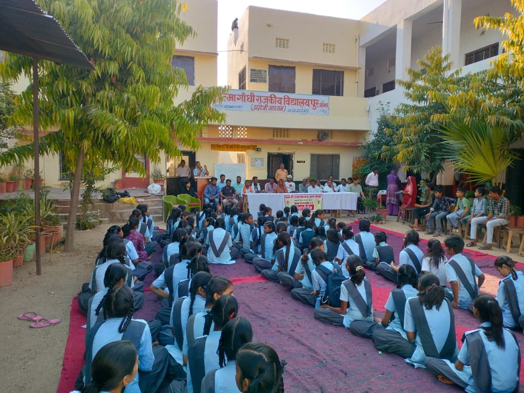गुरला :-(बद्री लाल माली) महात्मा गांधी राजकीय विद्यालय पुर में मेघा पीटीएम आयोजित कर स्थानीय परीक्षा परिणाम घोषित किए गए। बड़ी संख्या में आए अभिभावकों का विद्यालय परिवार द्वारा उमेश मेहता, रामजस रेगर, सावित्री वैष्णव, संगीताव्यास ने तिलक लगाकर , उपरना पहना कर सम्मान किया। मेघा पीटीएम को संबोधित करते हुए प्रधानाचार्य प्रेम शंकर जोशी ने कहा कि इस वर्ष विद्यालय का पांचवी, आठवीं, दसवीं बोर्ड परीक्षा परिणाम शत प्रतिशत रहा। तथा अधिकतम बच्चे प्रथम श्रेणी व द्वितीय श्रेणी में उत्तीर्ण हुए। प्रखर व प्रबल कार्यक्रम के तहत वर्ष पर्यंत बालकों को धारा प्रवाह पठन व विचार अभिव्यक्ति का अभ्यास करवाया गया। जिसकी शत प्रतिशत उपलब्धि रही। प्रवेश प्रभारी कुलदीप सिंह, राजेश शर्मा, ने प्रवेश के ऑनलाइन प्रथम चरण के बाद कक्षा वार रिक्त सीटों की जानकारी देते हुए जल्दी से जल्दी ऑनलाइन आवेदन करवाने का आग्रह किया। शारीरिक शिक्षिका मीना सिंघवी,ने अभिभावकों को अपने बालकों पर व्यक्तिगत ध्यान देने एवं समय-समय पर विद्यालय आकर छात्रों की उपलब्धि की जानकारी प्राप्त करने हेतु प्रेरित किया। अभिभावकों ने विद्यालय की उपलब्धियों के लिए प्रधानाचार्य सहित समस्त विद्यालय परिवार की कर्तव्य निष्ठा की सराहना की। मेघा पीटीएम के सफल आयोजन में भावना शर्मा, सपना बलाई, बैनाथ बैरवा, अक्षय बिश्नोई, अनिल चौधरी, प्रज्ञा नाहर का विशेष योगदान रहा।